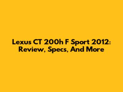 Lexus CT 200h F Sport 2012: Review, Specs, And More