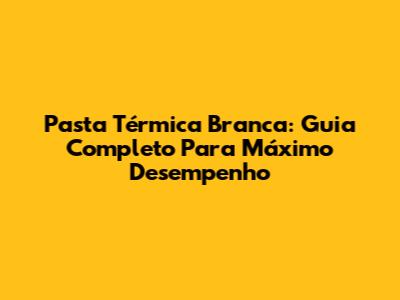 Pasta Térmica Branca: Guia Completo Para Máximo Desempenho