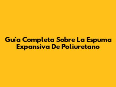 Guía Completa Sobre La Espuma Expansiva De Poliuretano