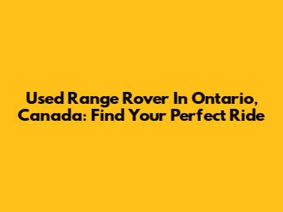 Used Range Rover In Ontario, Canada: Find Your Perfect Ride