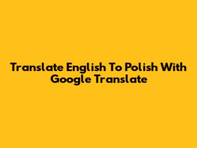 Translate English To Polish With Google Translate