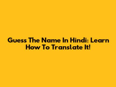 Guess The Name In Hindi: Learn How To Translate It!
