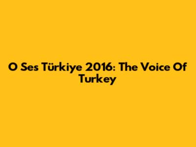 O Ses Türkiye 2016: The Voice Of Turkey