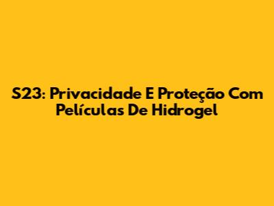 S23: Privacidade E Proteção Com Películas De Hidrogel