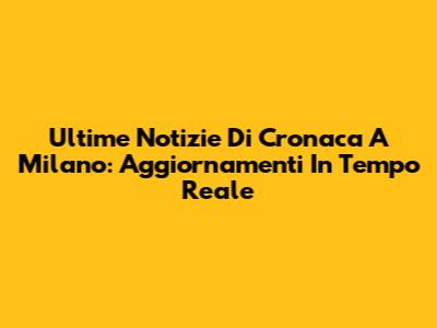 Ultime Notizie Di Cronaca A Milano: Aggiornamenti In Tempo Reale