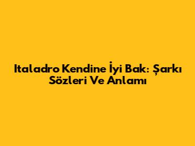 Italadro Kendine İyi Bak: Şarkı Sözleri Ve Anlamı
