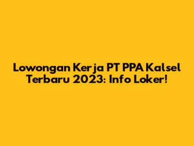 Lowongan Kerja PT PPA Kalsel Terbaru 2023: Info Loker!