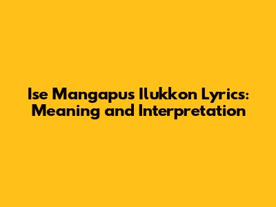 Decoding the Lyrics of Ise Mangapus Ilukkon