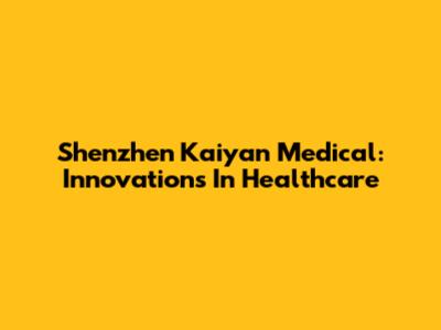 Shenzhen Kaiyan Medical: Innovations In Healthcare