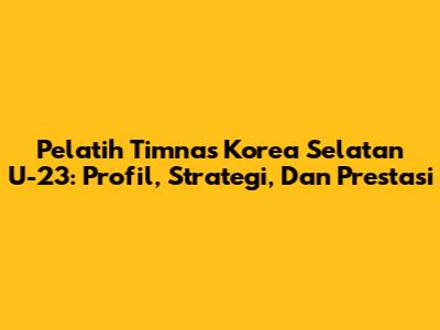 Pelatih Timnas Korea Selatan U-23: Profil, Strategi, Dan Prestasi