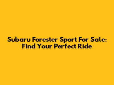 Subaru Forester Sport For Sale: Find Your Perfect Ride