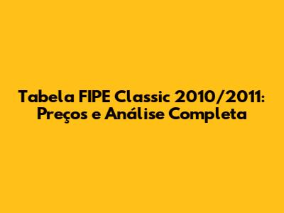 Tabela FIPE: Entendendo os Preços do Classic 2010/2011