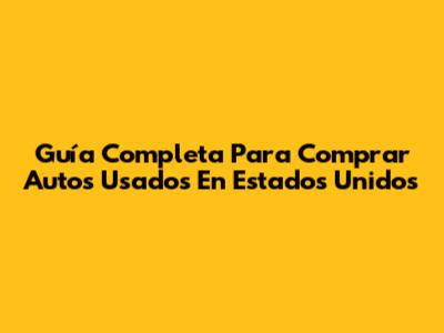 Guía Completa Para Comprar Autos Usados En Estados Unidos