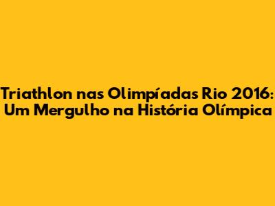 Memórias Olímpicas: O Legado do Triathlon no Rio de Janeiro